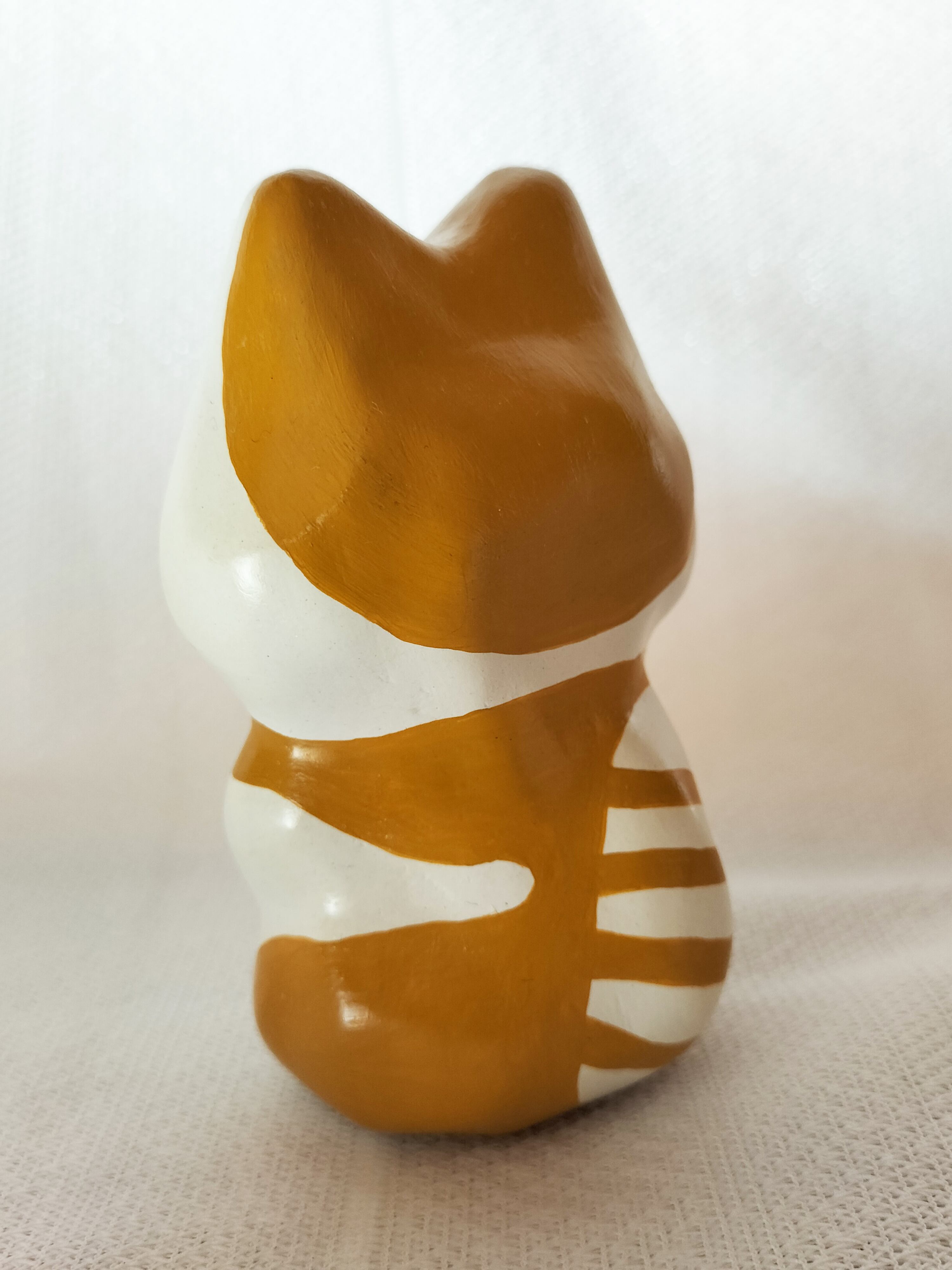 地域猫としてお世話していたちゃとらの男の子ちゃしろちゃんをモデルに作った張り子の猫です。