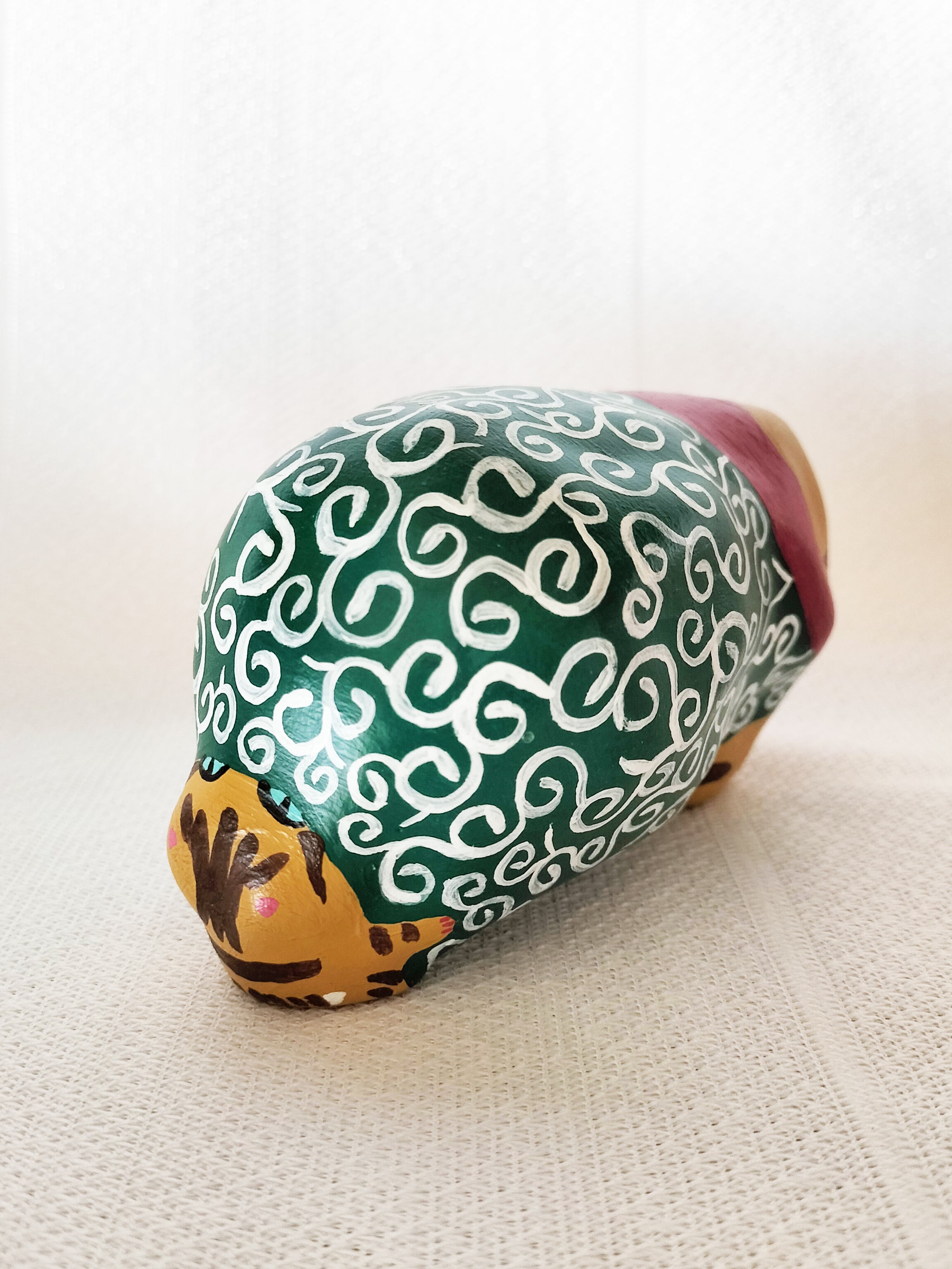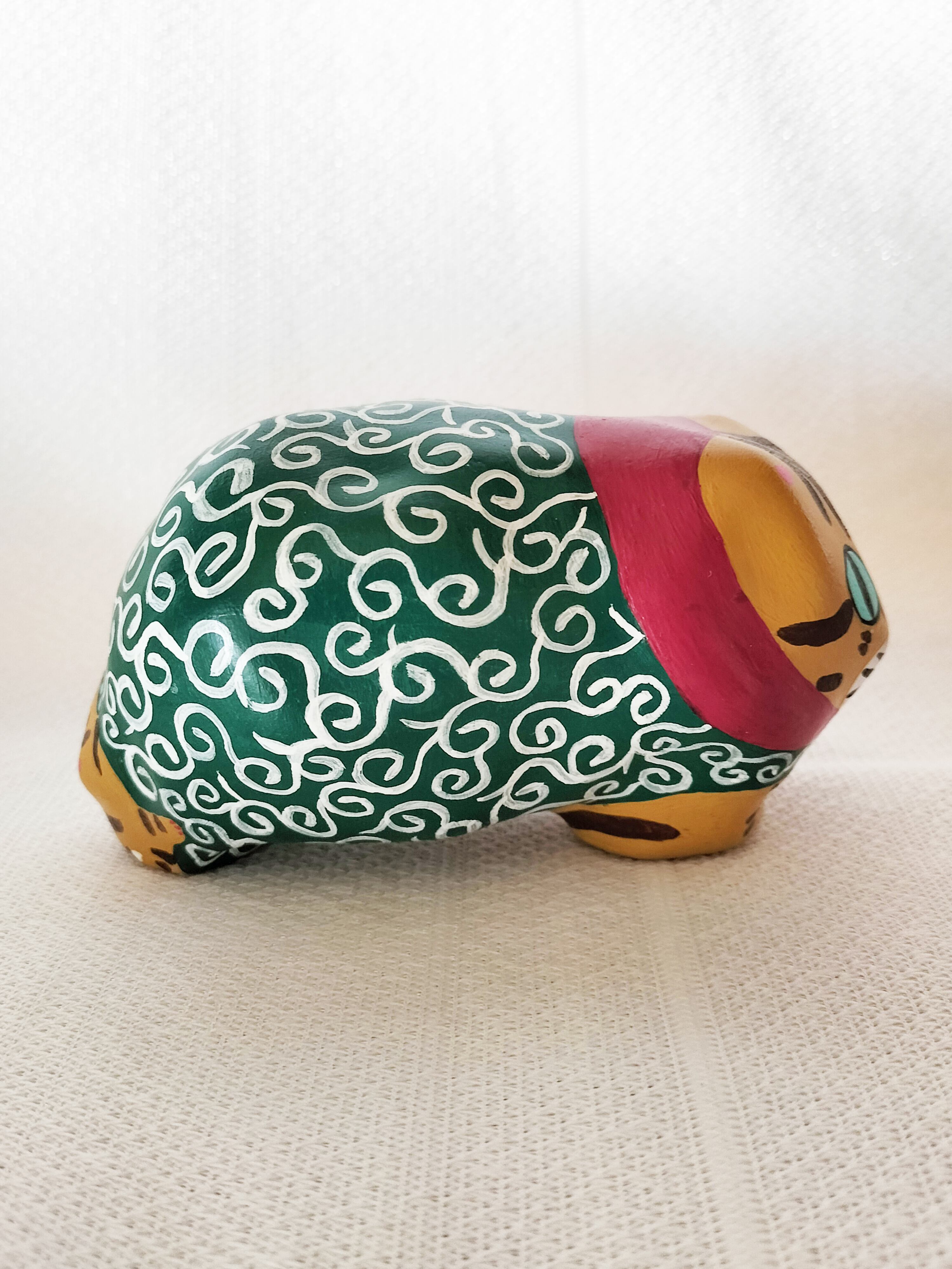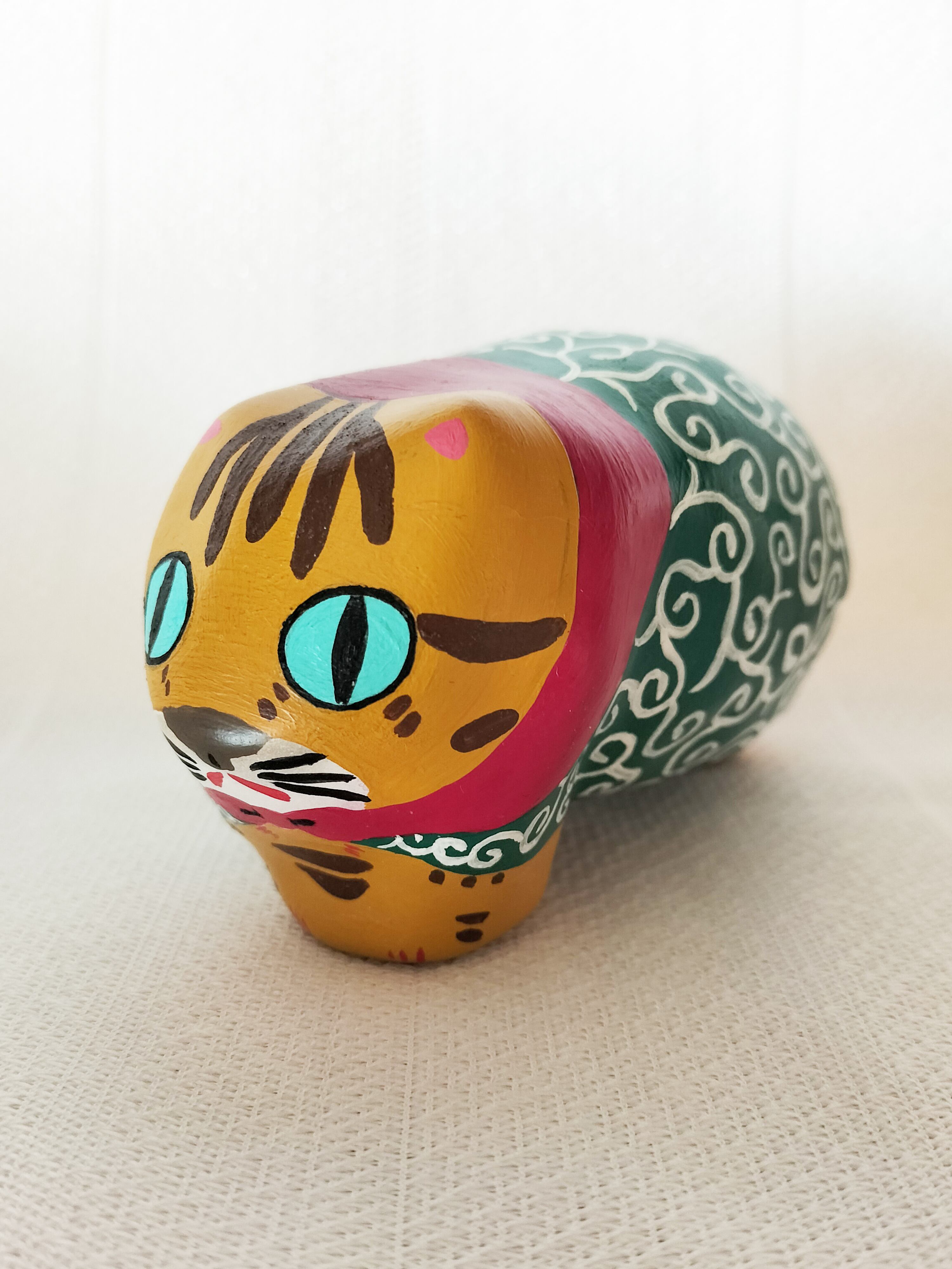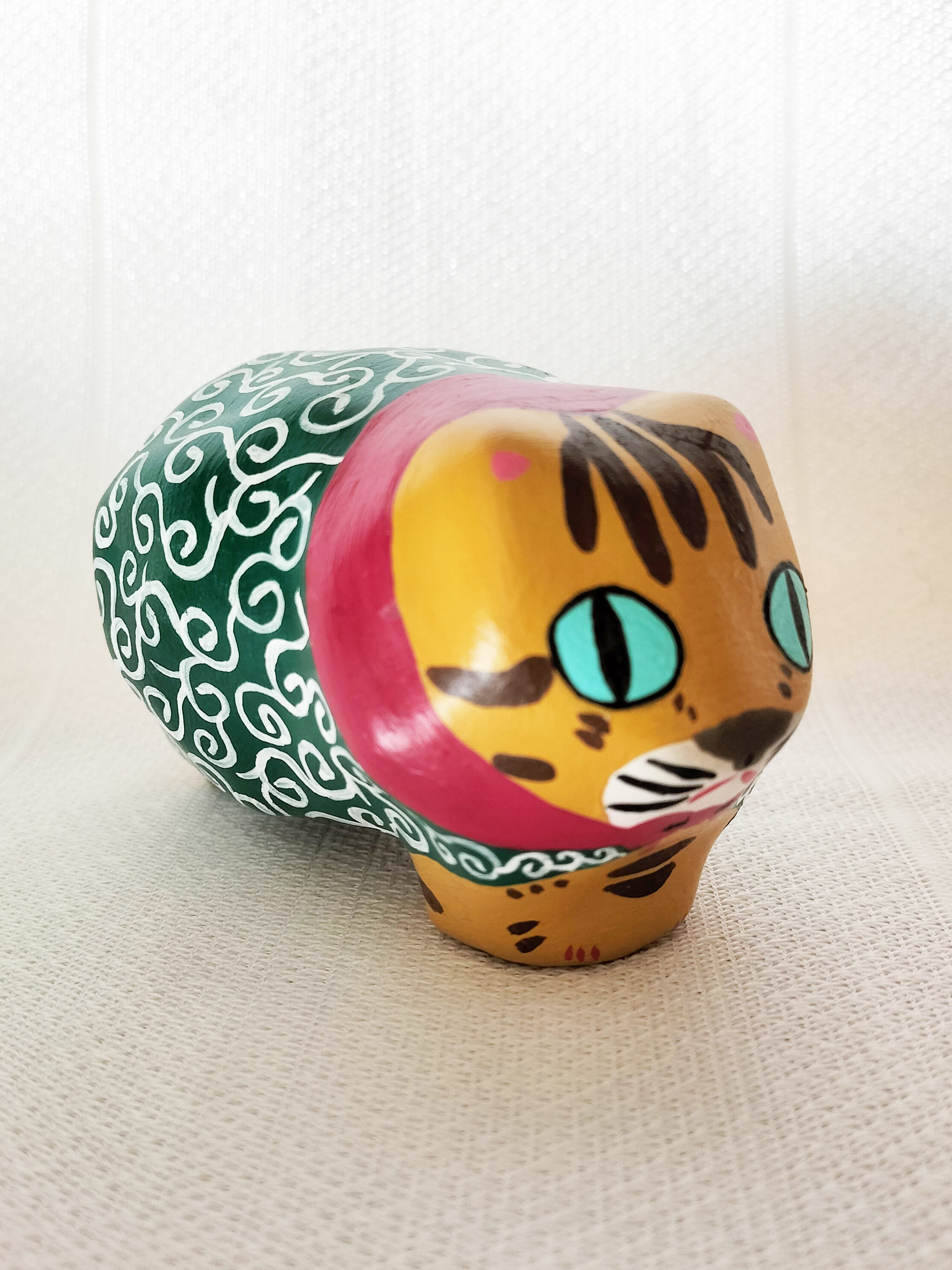地域猫としてお世話していたちゃとらの男の子てぃーちゃんとちゃとらの男の子ぺーちゃんをモデルに、盗人の親分子分にして作った張り子の猫です。