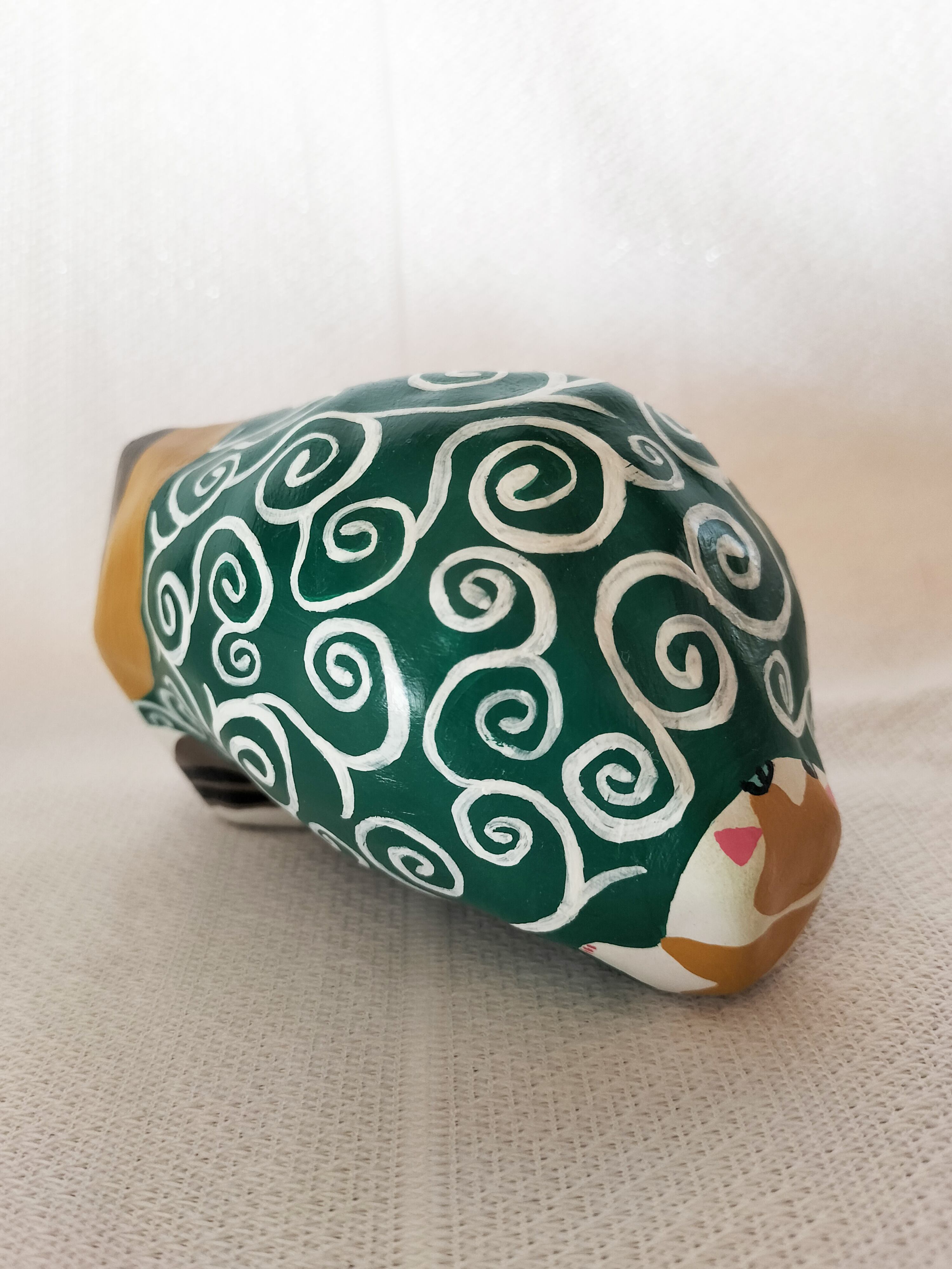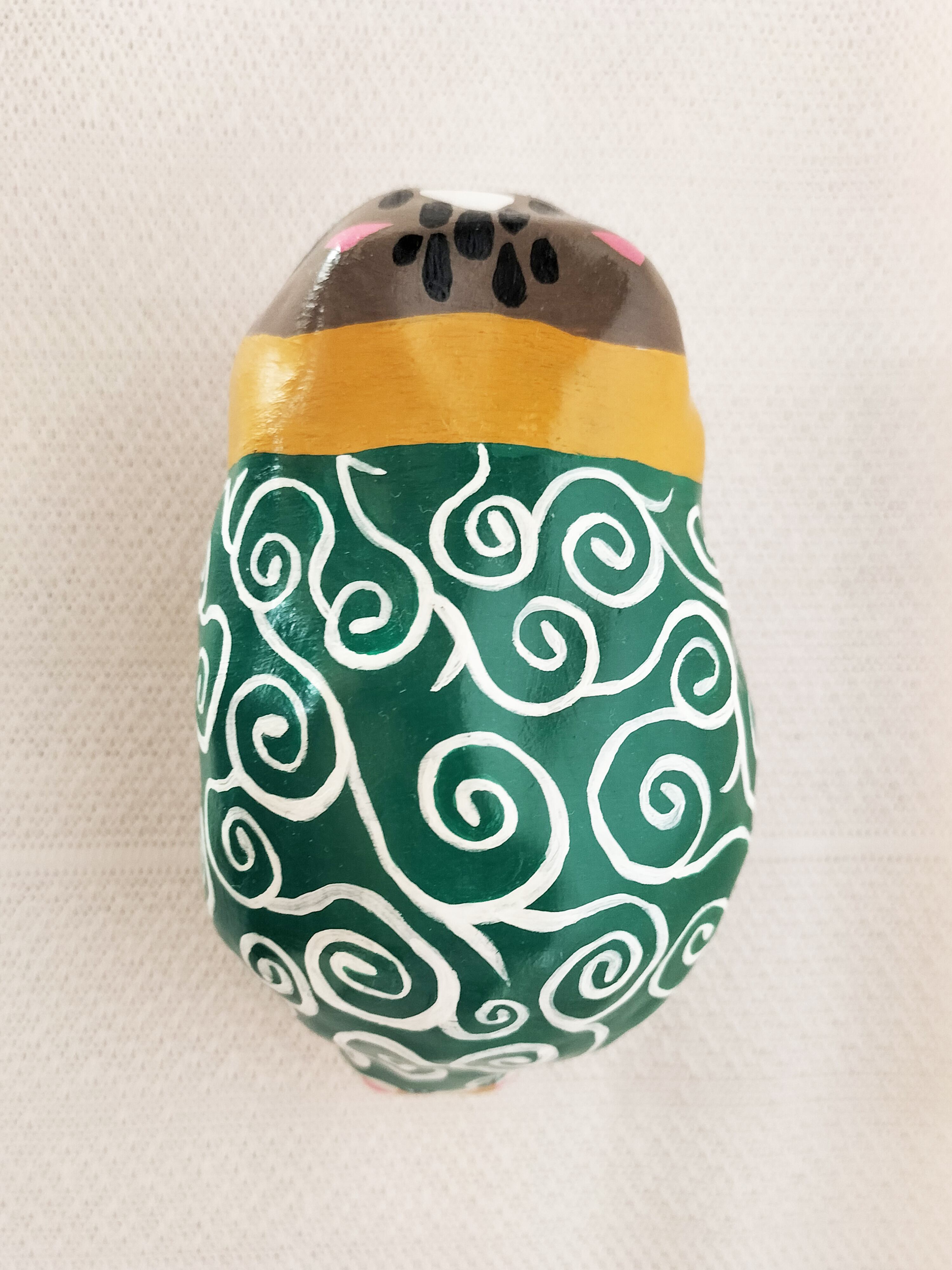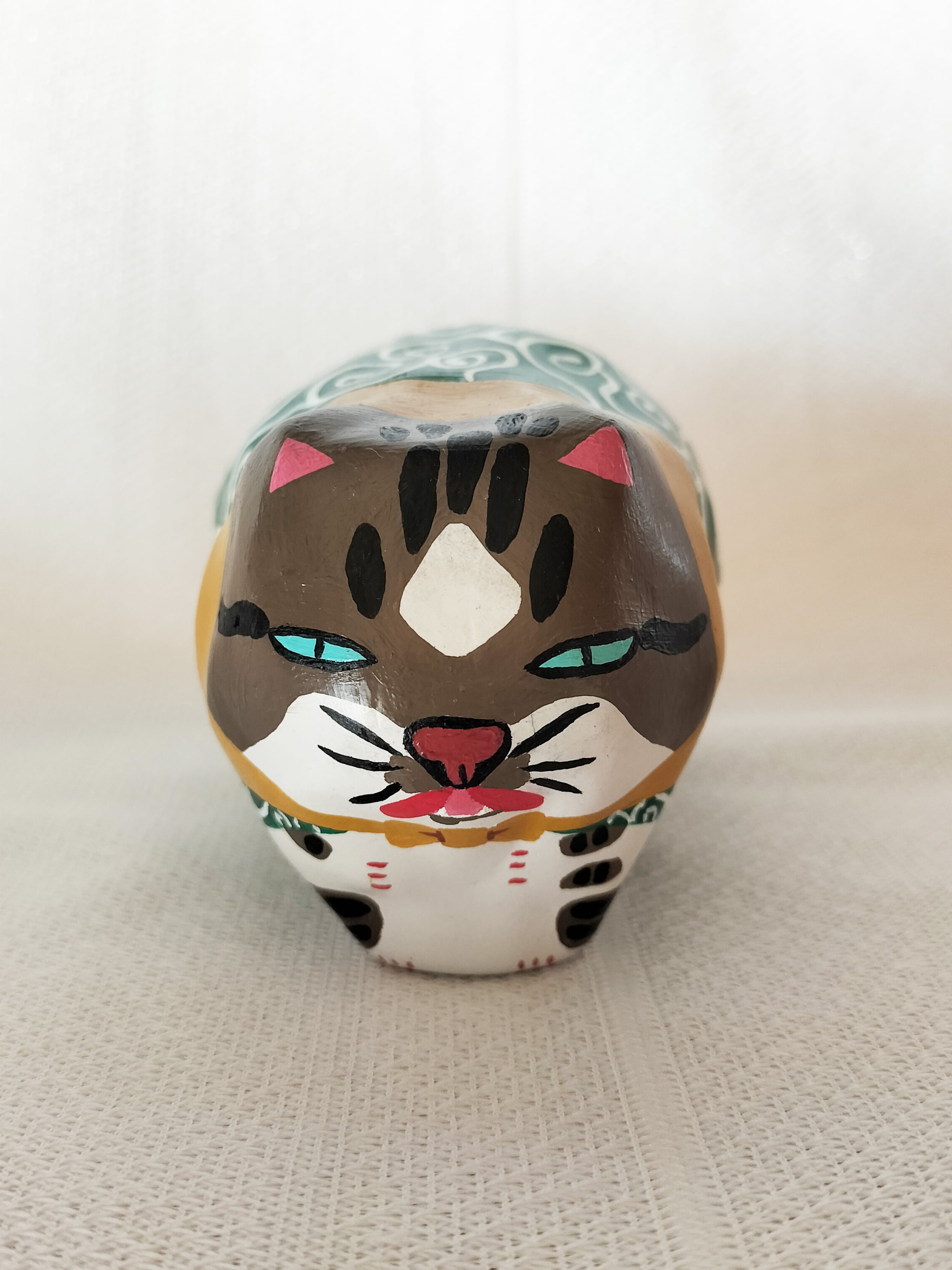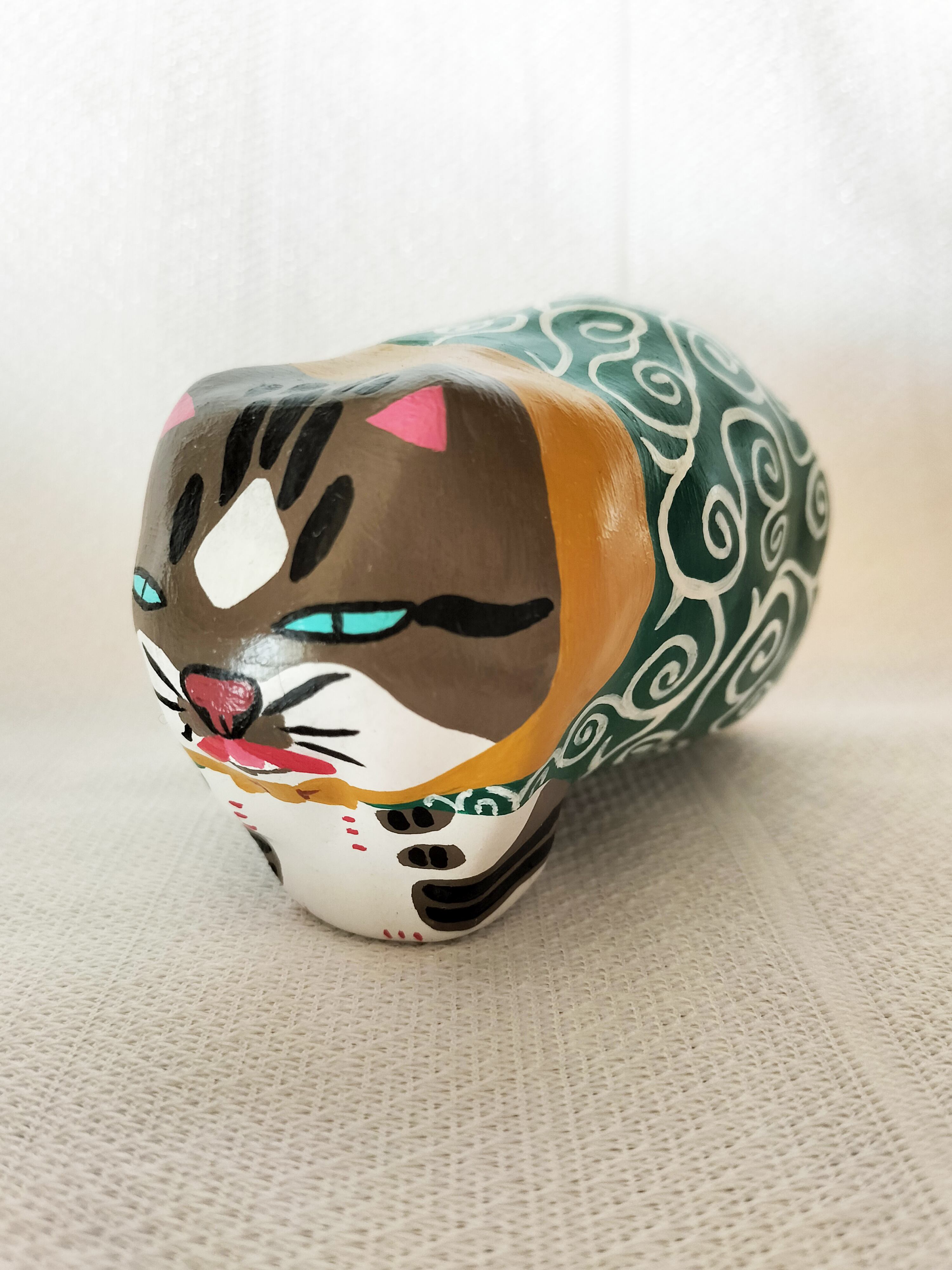地域猫としてお世話していたきじしろの男の子ぶろんそんちゃんとちゃしろ柄の男の子ちゃしろちゃんをモデルに、盗人の親分子分にして作った張り子の猫です。